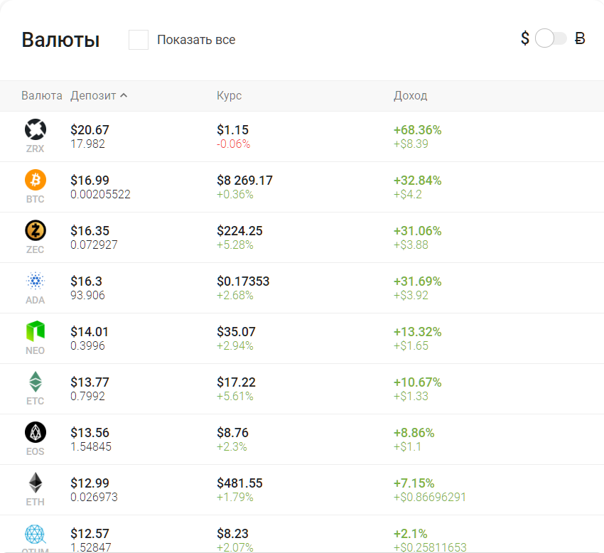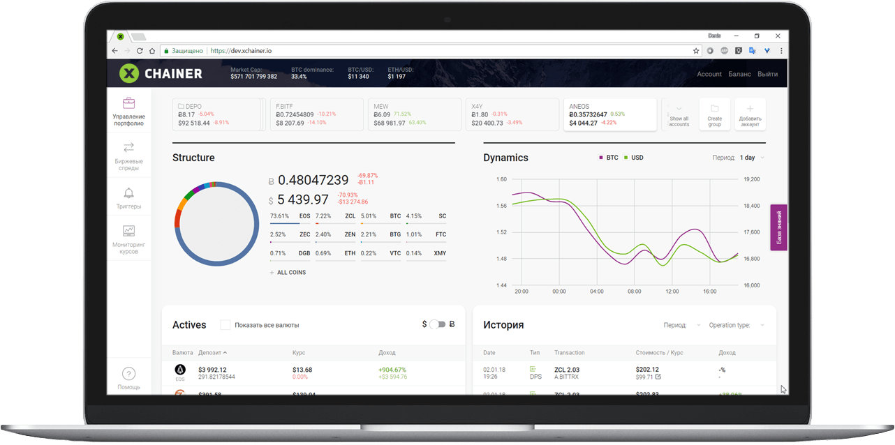 На основании всей истории торговых операций и перемещений xChainer расчитывает текущую доходность каждой валюты. Вы всегда знаете, какой плюс или минут дает та или иная криптовалюта, не беспокоясь о том, сколько и каких манипуляций было сделано.